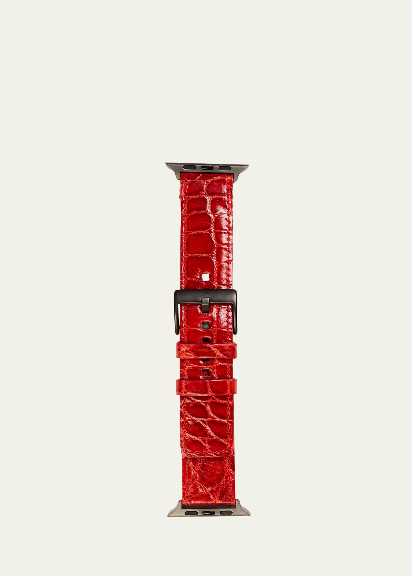 Abas watch strap for Apple Watch® in luxurious american alligator and calf leather Compatible with all generations of Apple Watch® Approx. 7"L Single-prong buckle strap Adjustable fit Space grey-finish aluminum Wipe clean Made in USA Case sold separately