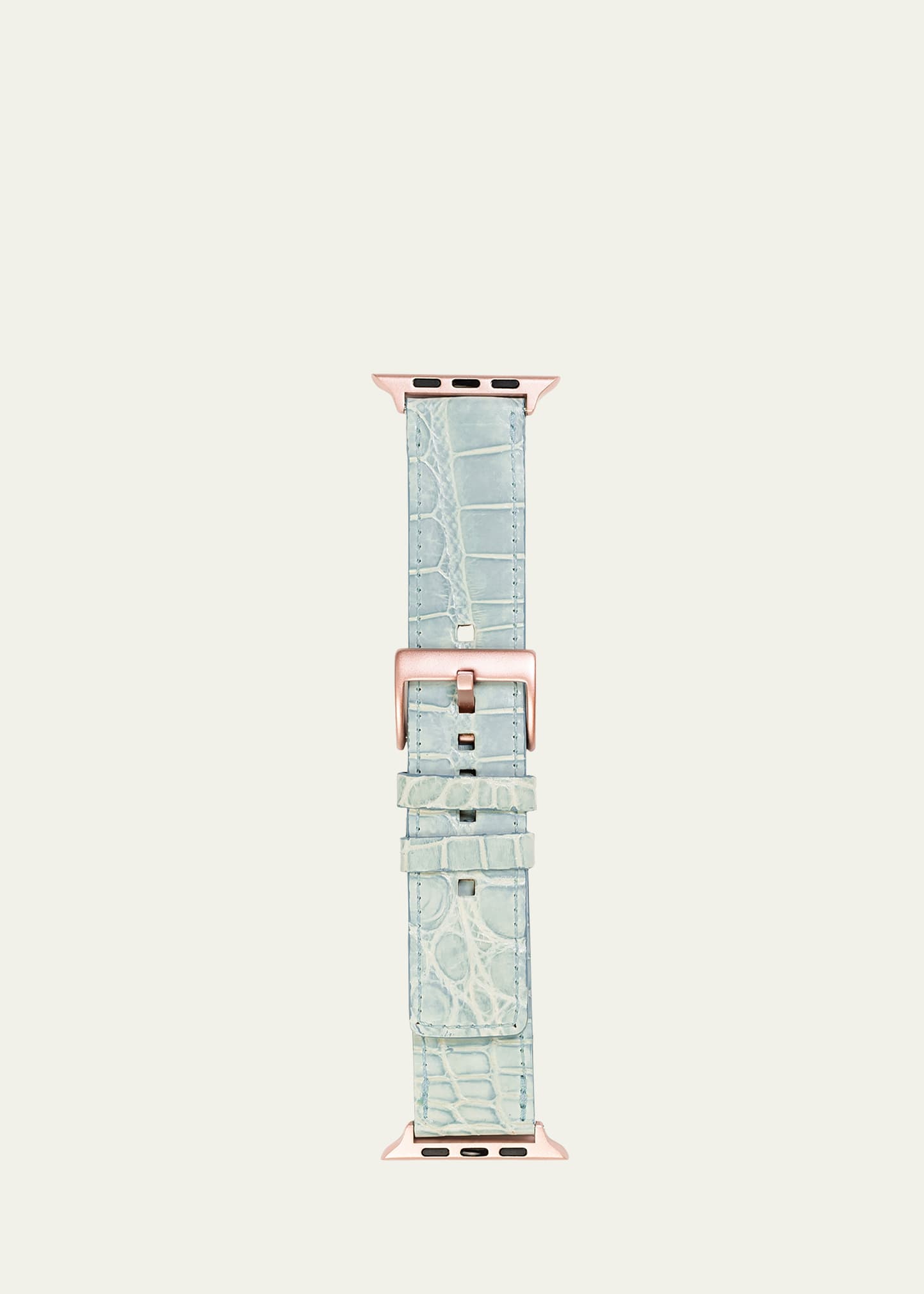 Abas watch strap for Apple Watch® in luxurious american alligator and calf leather Compatible with all generations of Apple Watch® Approx. 7"L Single-prong buckle strap Adjustable fit Rose gold-finish aluminum Wipe clean Made in USA Case sold separately