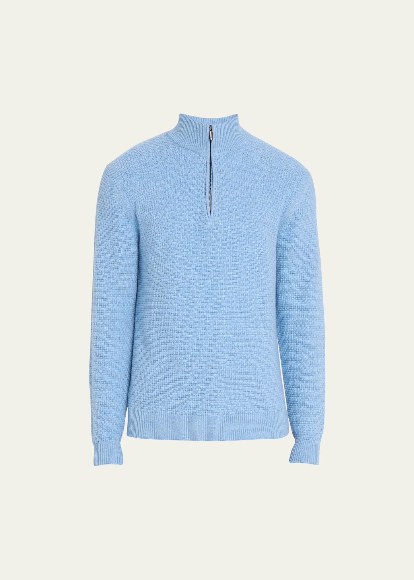 Cesare Attolini basketweave sweater Stand collar; quarter-zip placket Long sleeves Ribbed trim Pullover style Cashmere Made in Italy