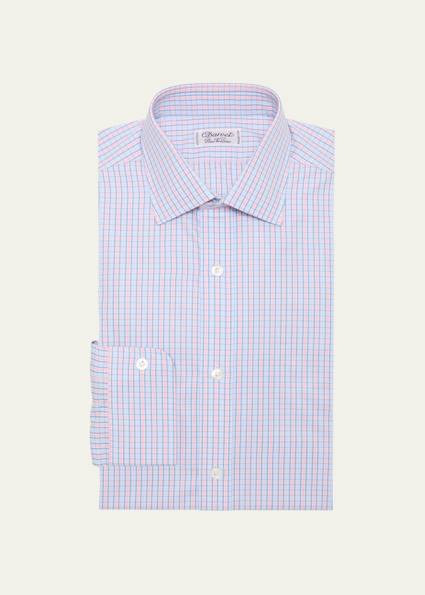 Charvet dress shirt with an allover two-tone plaid print motif Point collar; button placket Long sleeves Round barrel cuffs Yoked back shoulders Shirttail hem Classic fit Cotton Made in Italy