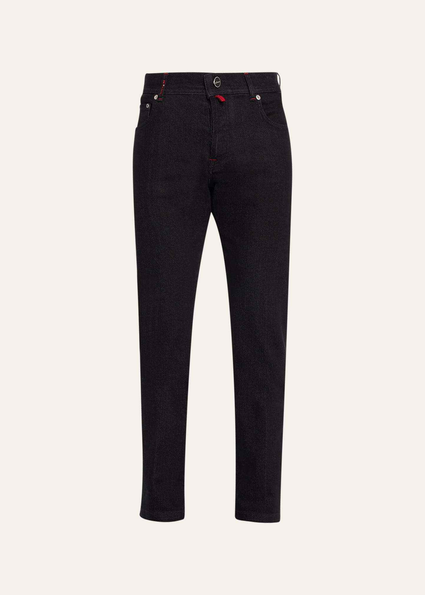Kiton jeans feature denim with an added stretch Button-zip front; belt loops Regular rise Five-pocket style Logo patch on the back Slim legs Full length Cotton/polyester/elastane Made in Italy
