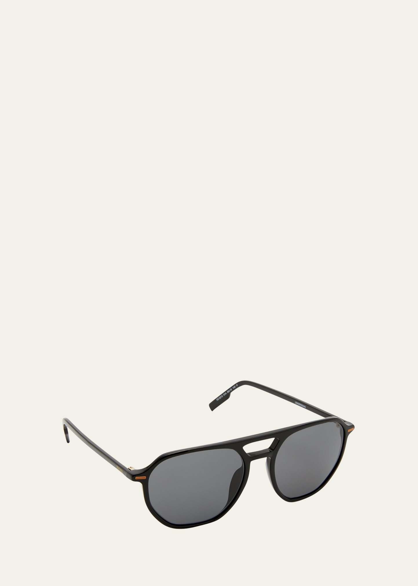 ZEGNA pilot sunglasses feature logo lettering at the temples Eye/bridge/temple (in mm): 55-18-145 Solid-color lenses Full-rim frames Double nose bridge Thin arms; curved temple tips Acetate 100% UVA/UVB protection Made in Italy