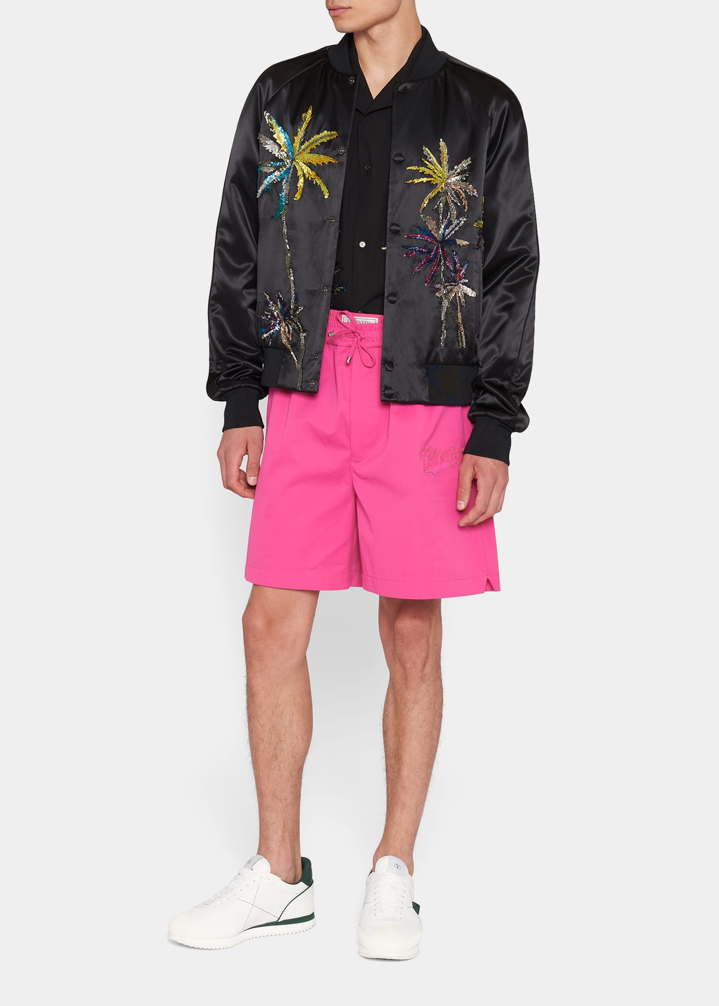 Valentino Garavani souvenir jacket with multicolor crystal palm embroidery Baseball collar; button front closure Welt pockets Long raglan sleeves Banded cuffs and hem Viscose/cotton Lining: Cupro Dry clean Made in Italy