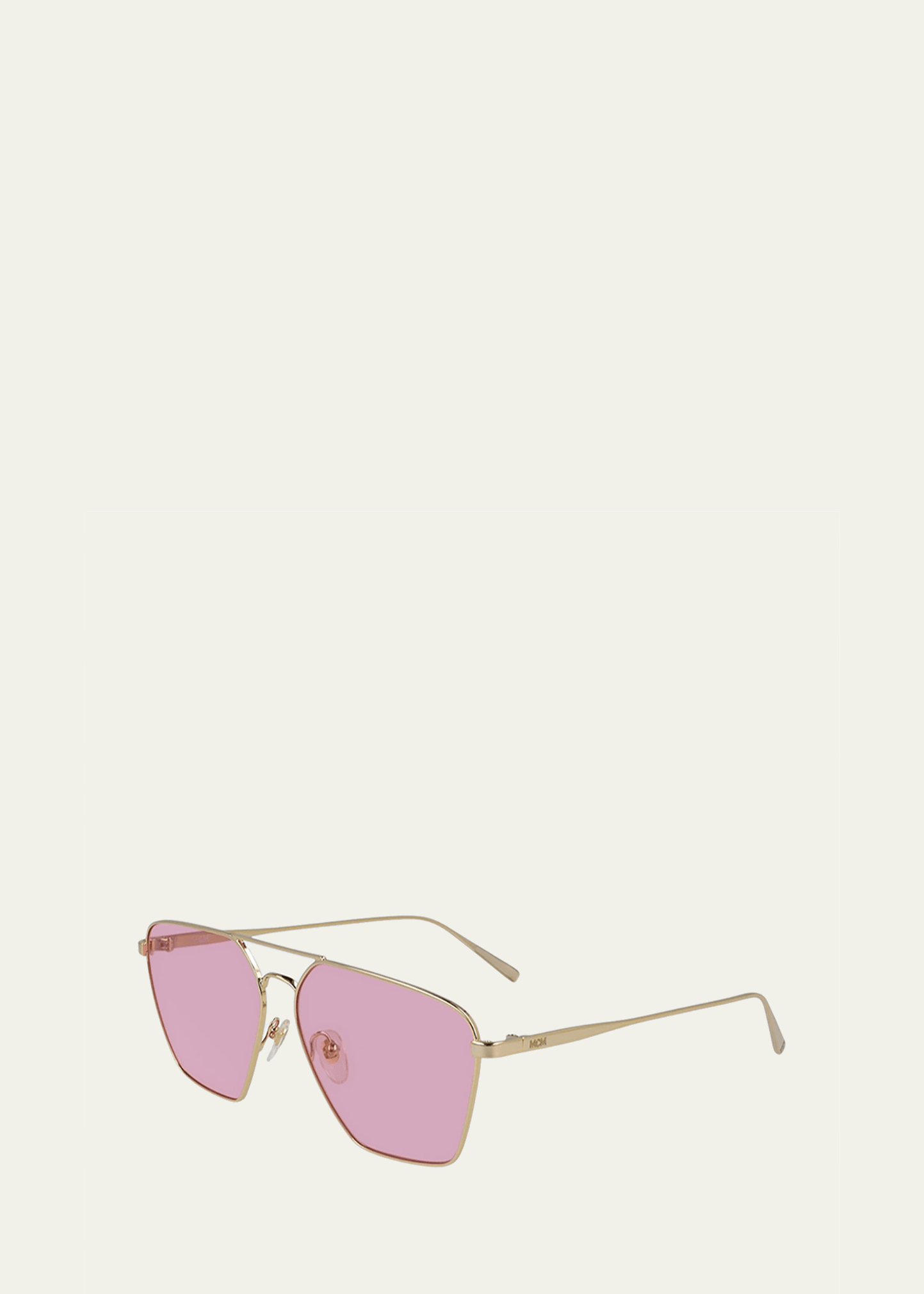 MCM navigator sunglasses in metal, featuring geometric shape. Eye/bridge/temple (in mm): 60-14-145. Adjustable nosepieces. 100%25 UVA/UVB protection. Made in Italy.