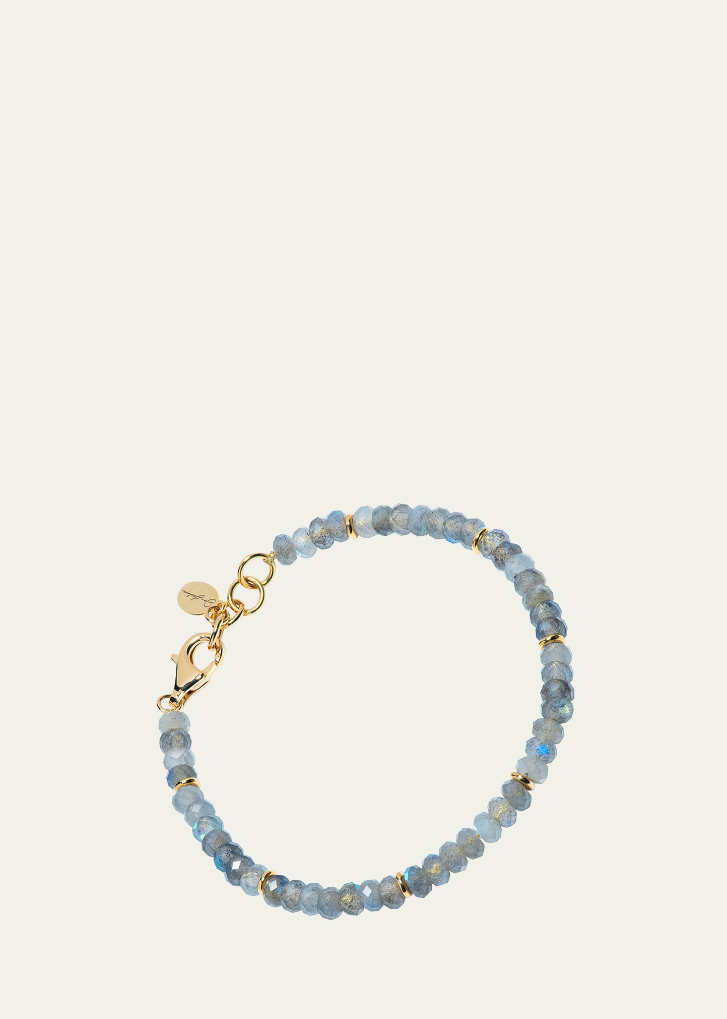 Jan Leslie bracelet Approx. 7-9"L 925 sterling silver Gray labradorite beads Stretch cord Adjustable fit Imported