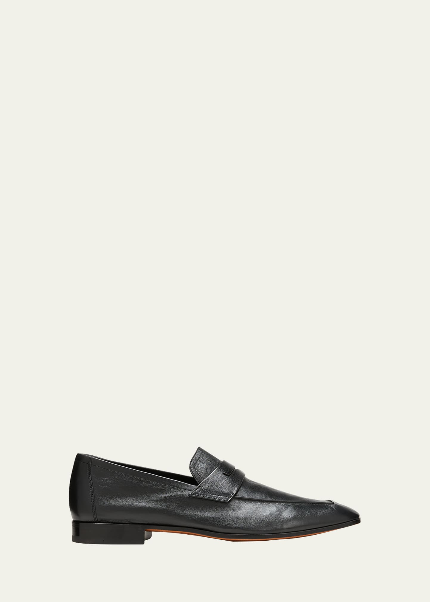 Berluti "Lorezno" loafers in soft kangaroo leather. Stacked heel. Square apron toe. Notched vamp. Strap across vamp. Slip-on style.