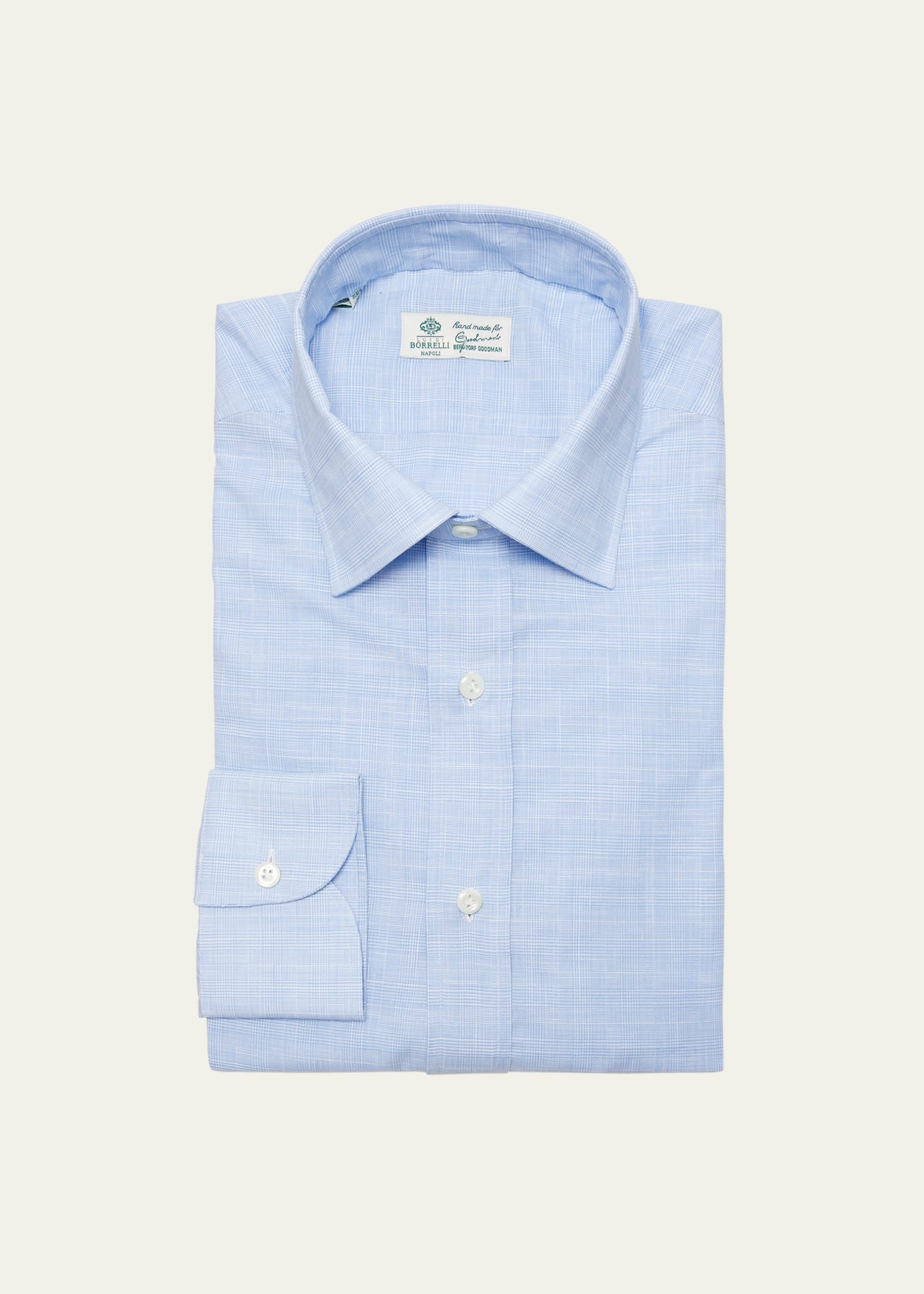 Borrelli dress shirt with an allover tonal micro-plaid print Point collar; button placket Long sleeves Round barrel cuffs Yoked back shoulders Shirttail hem Cotton Made in Italy