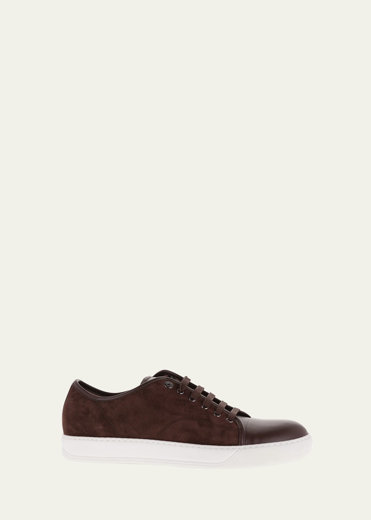 Lanvin low-top sneakers in suede with a nappa leather cap toe Flat heel Round toe Lace-up vamp Rubber outsole Made in Portugal