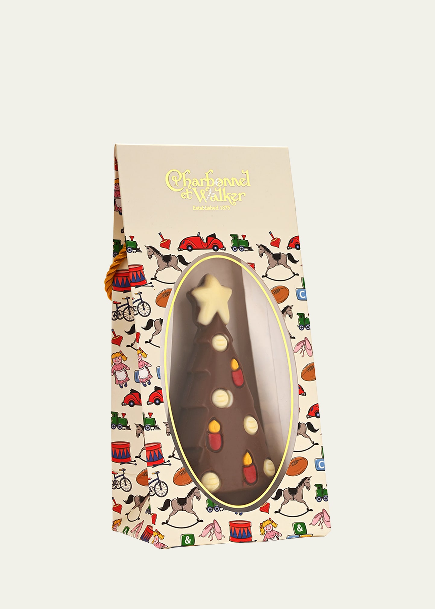 This striking Christmas tree makes such a lovely festive treat. Made with delicious milk and white chocolate and decorated with white chocolate Christmas baubles. Beautifully presented in a decorated gift bag. Delightful treats for Christmas cheer! Approx. 3.5"L Shelf life: 6 months Net wt. 2.1oz/59.5g Item Weight (Lbs.): 0.1 Made in United Kingdom