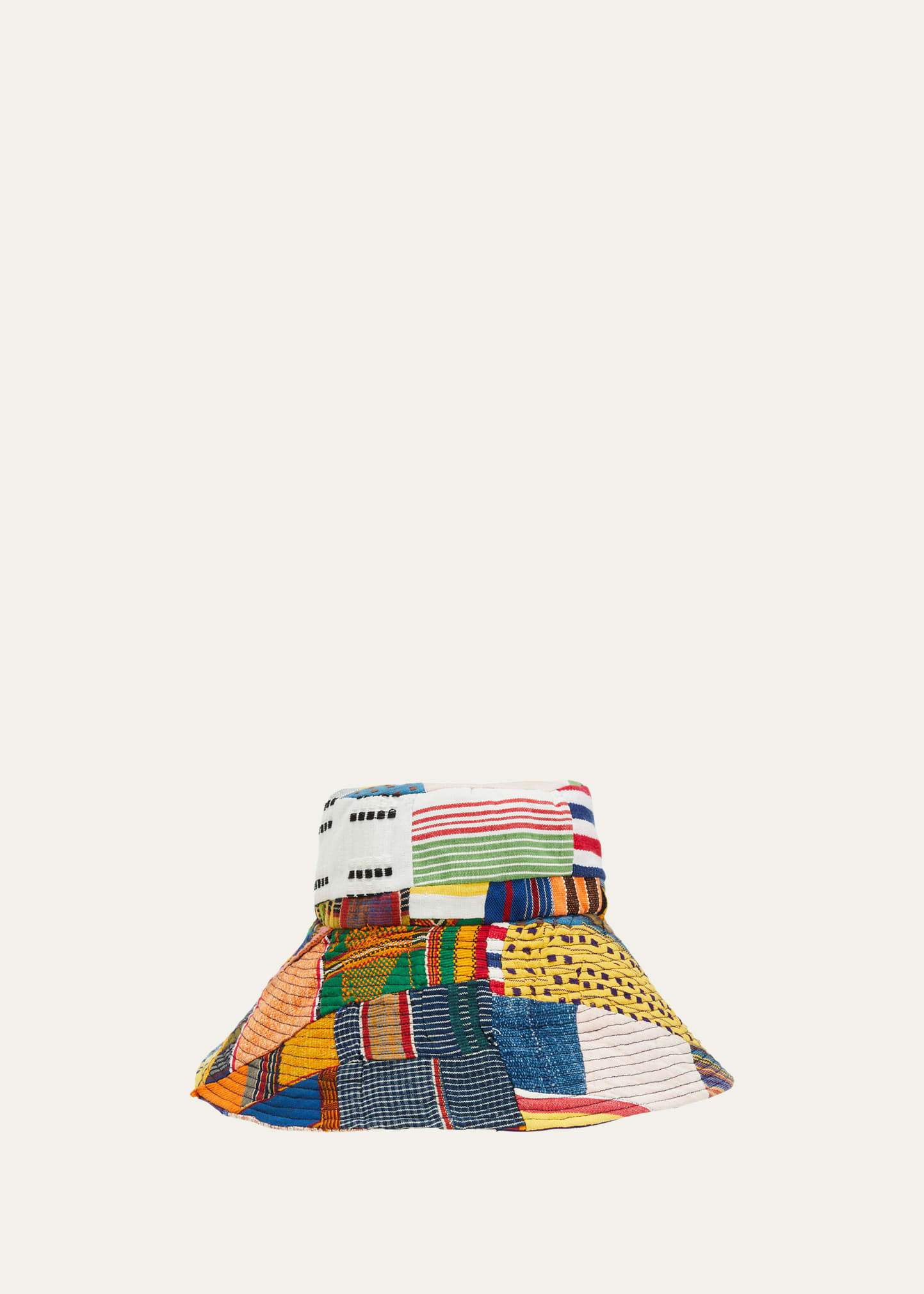 Studio 189 kente bucket hat patchworked from cotton offcuts to create a beautiful pattern Flat crown Wide brim Cotton Dry clean Imported