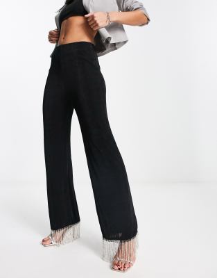 Pants & Leggings by NA-KD Collaboration with influencer Mimi A.R High rise Zip-side closure Diamante fringe to cuffs Straight fit