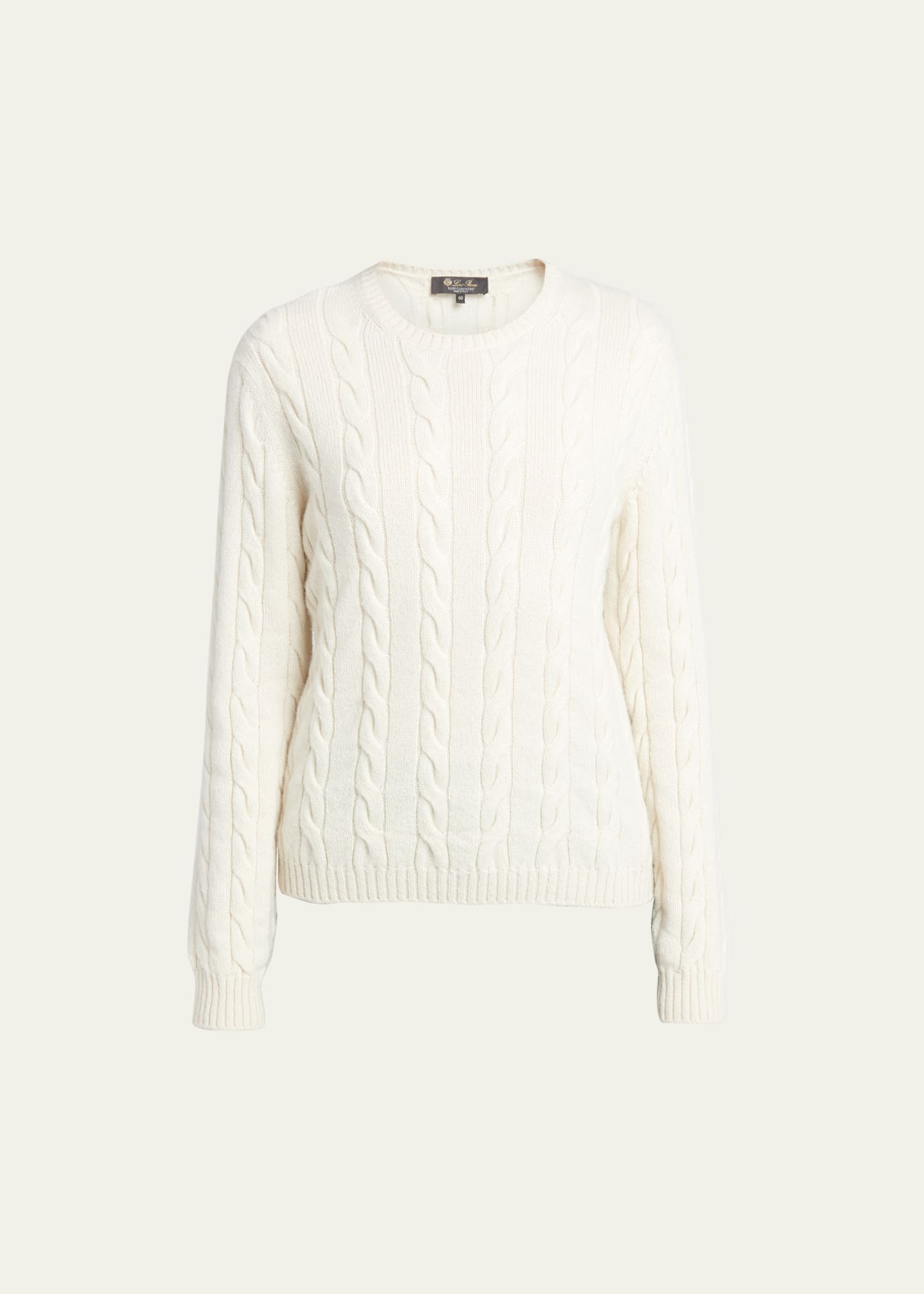 Loro Piana "Napier" cable-knit sweater Crew neckline Long sleeves Relaxed fit Ribbed trim Pullover style Cashmere Dry clean Made in Italy