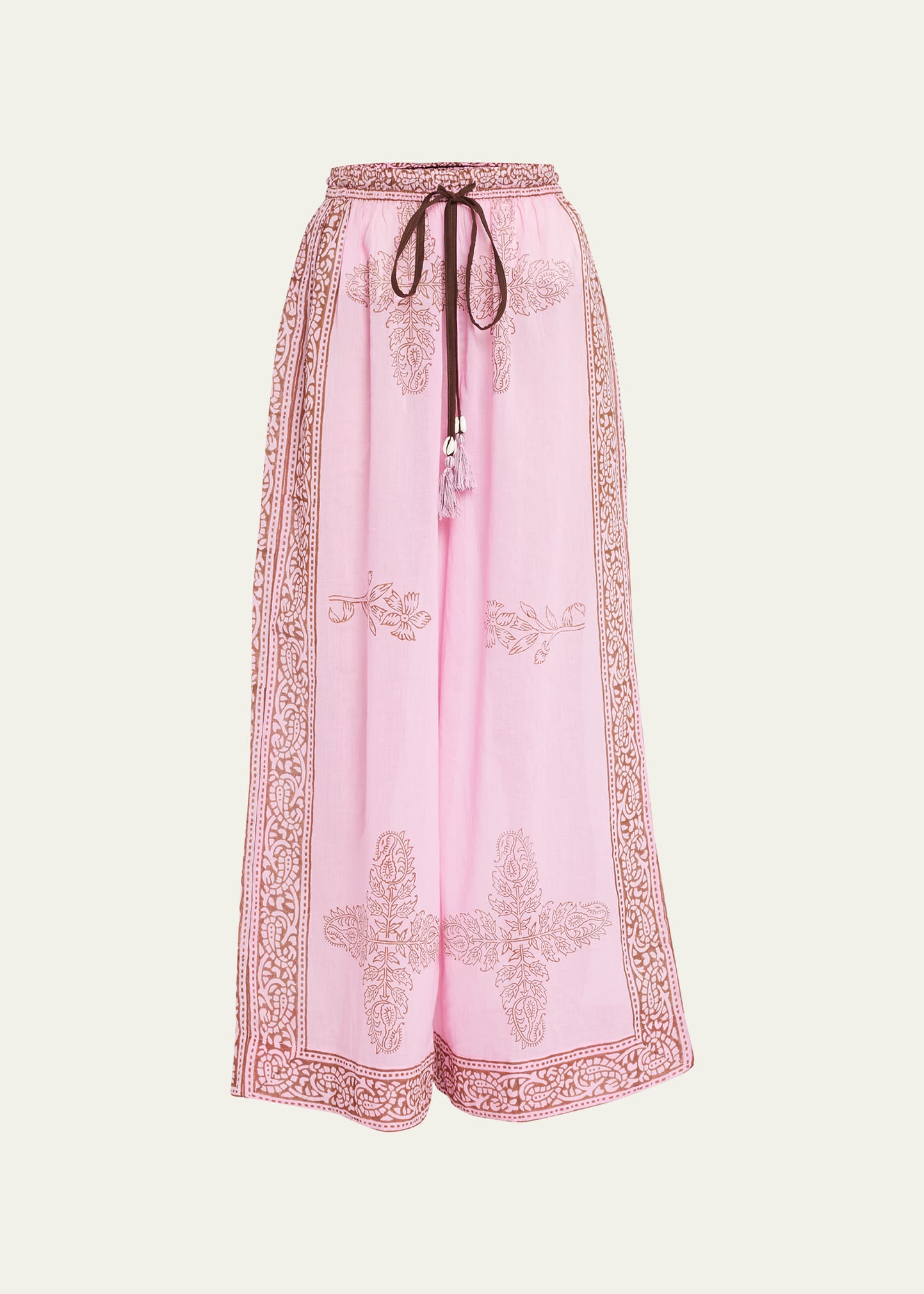 Alix of Bohemia "Natalie" hand block-printed pants featuring a drawstring waist and cowrie shell tassels Elastic waistband High rise Loose, easy fit Full length Pull-on style Cotton Machine wash cold Imported