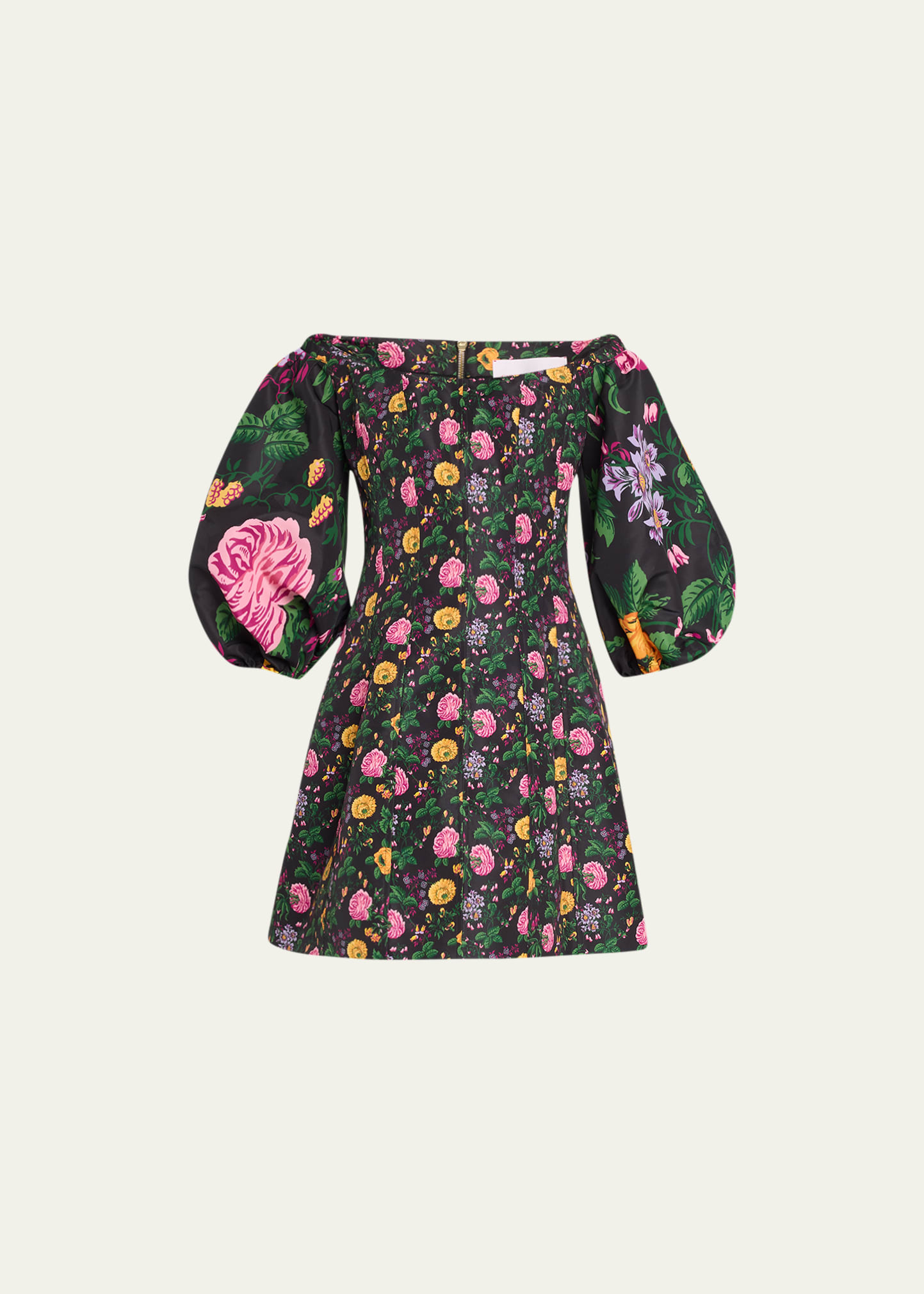 Carolina Herrera corset mini dress features an allover floral print and large balloon sleeves Scoop neckline 3/4 sleeves Concealed back zip Hem falls above the knee A-line silhouette Polyester Lining: Polyester Dry clean Made in Italy