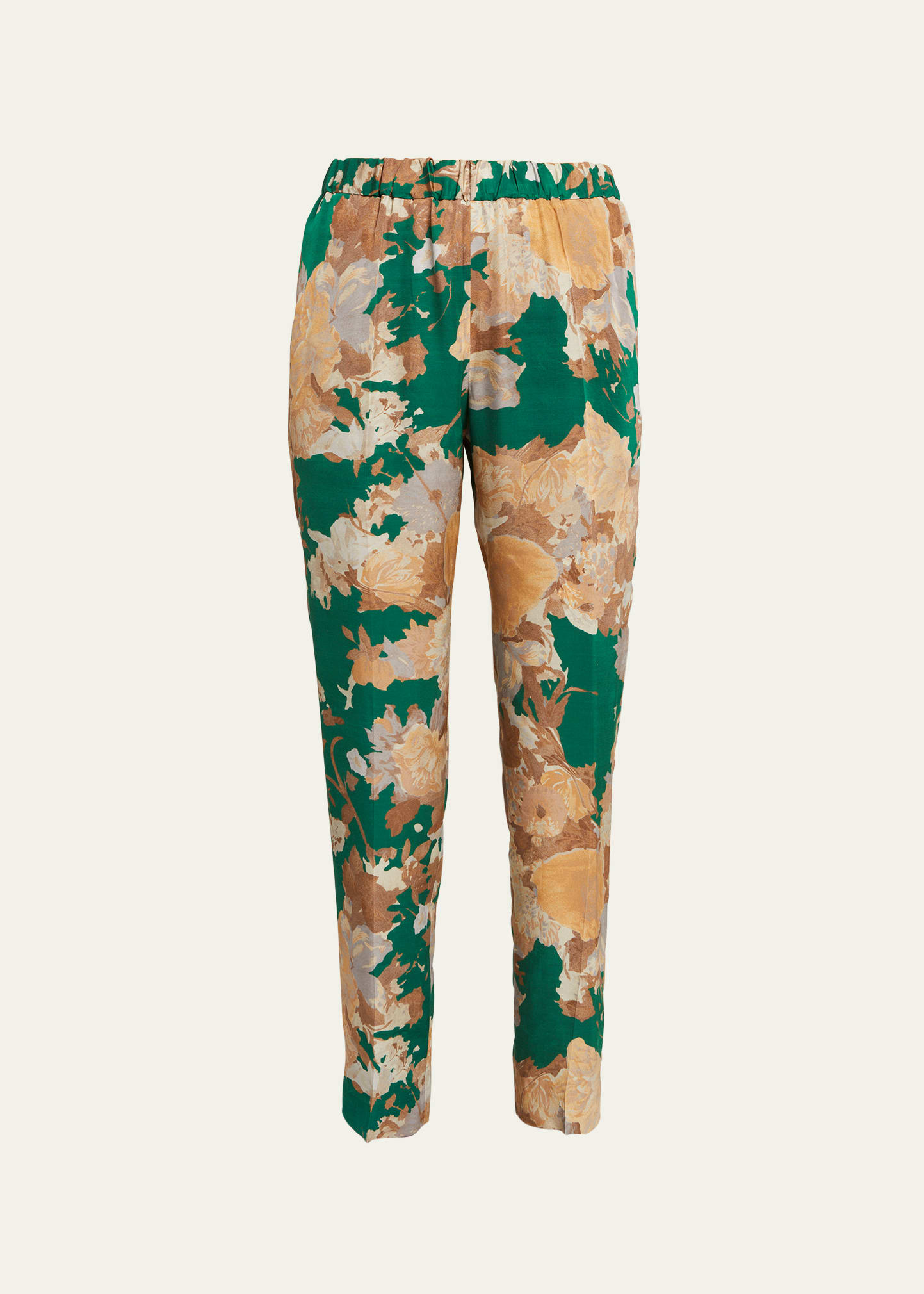 Dries Van Noten "Palmira" pants in floral print High rise Elastic waistband Side seam pockets Skinny, Straight legs Full length Pull-on style Viscose Dry clean Made in Romania
