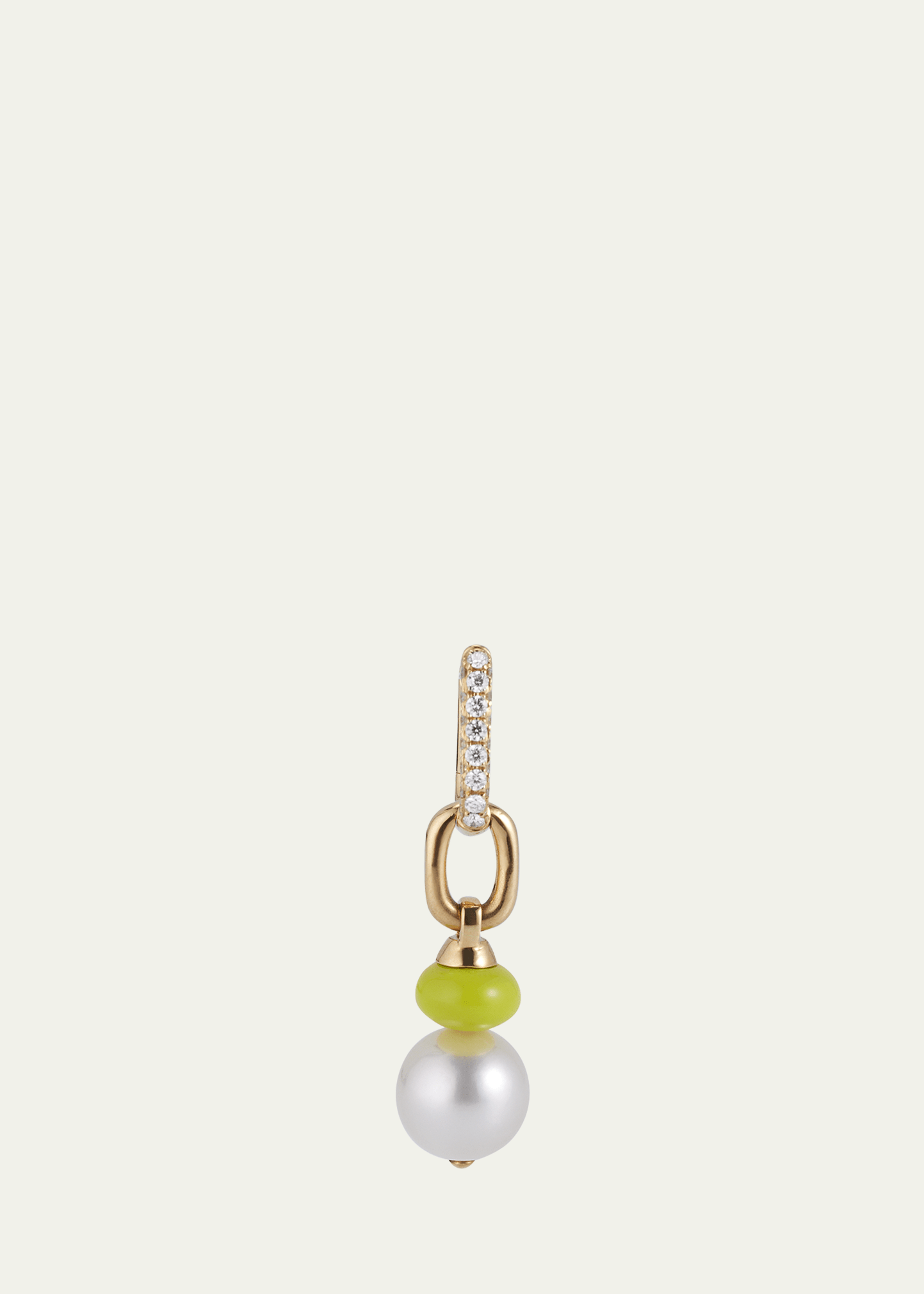 Boochier drop earring Polished 18-karat yellow gold Posts with round white diamonds Naturally white Akoya cultured pearl YELLOW STONE ??? 0.2 total diamond carat weight For pierced ears Sold individually Imported