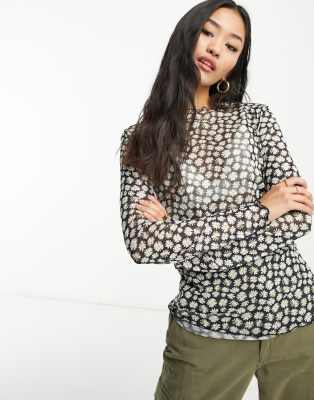 T-shirt by Pieces Your new go-to All-over print Round neck Long sleeves Lettuce trims Regular fit