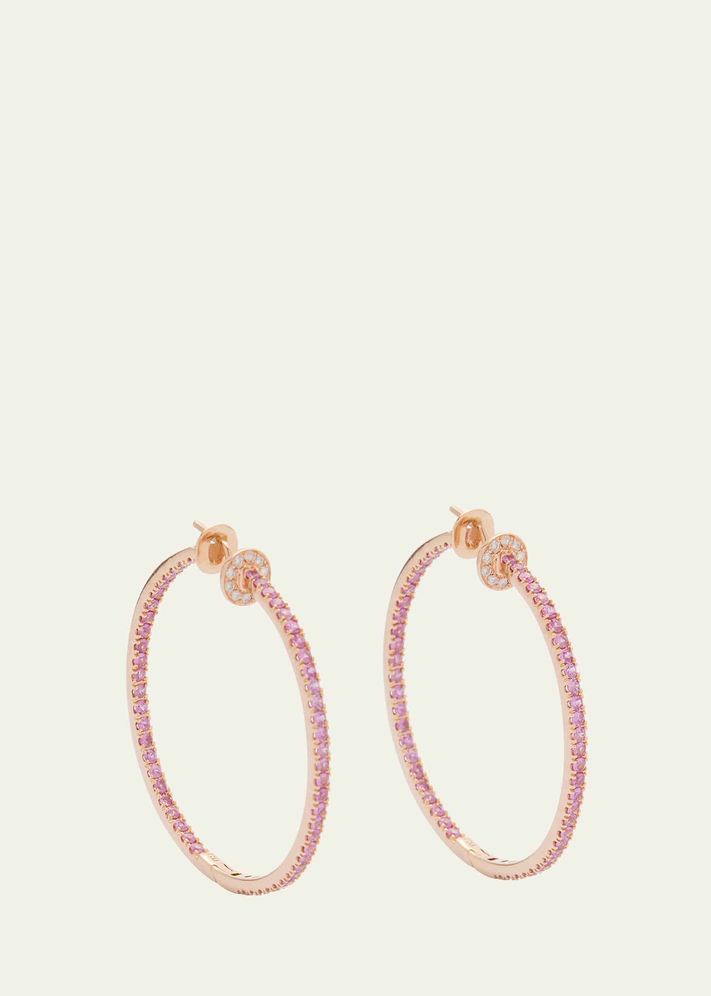 Nam Cho earrings Approx. 1.35" diameter 18-karat pink gold with white diamonds Pavé pink sapphire trim Total diamond carat weight: 0.15 Total pink sapphire carat weight: 2.3 For pierced ears Imported