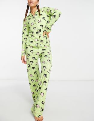 Sleepwear Sets by Urban Threads Includes a shirt and a pair of pants The Powerpuff Girls design Regular-fit shirt Camp collar Button placket Long sleeves Straight-fit pants High rise Elasticized waistband
