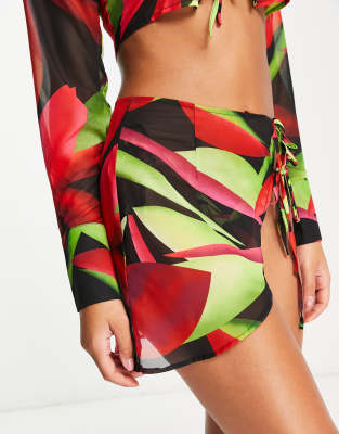 Public Desire floral palm print chiffon tie front beach skirt in multi - part of a set