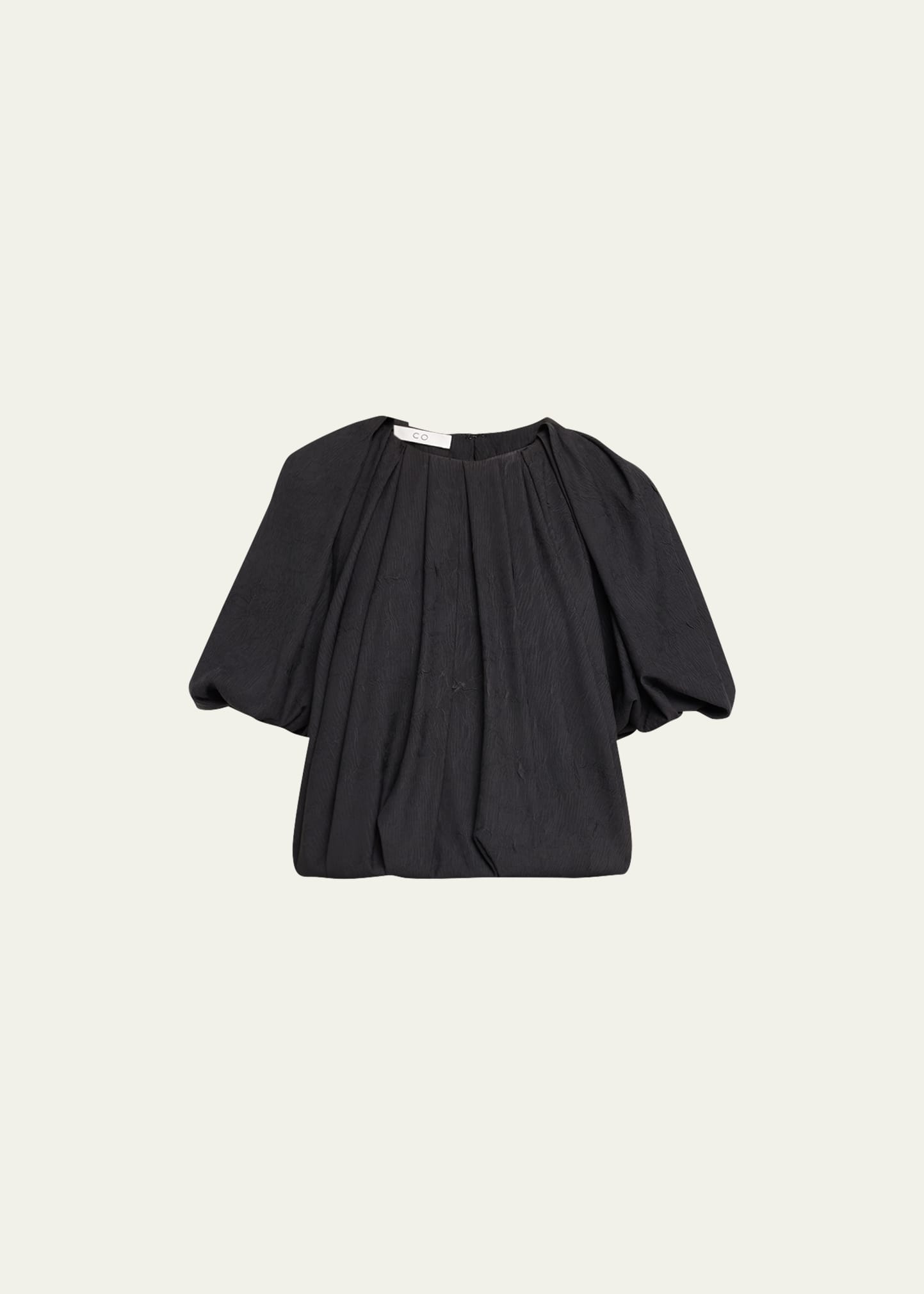 Co puff sleeve top with gathered detail Crew neckline Elbow-length sleeves Relaxed fit Back zip Polyester Imported