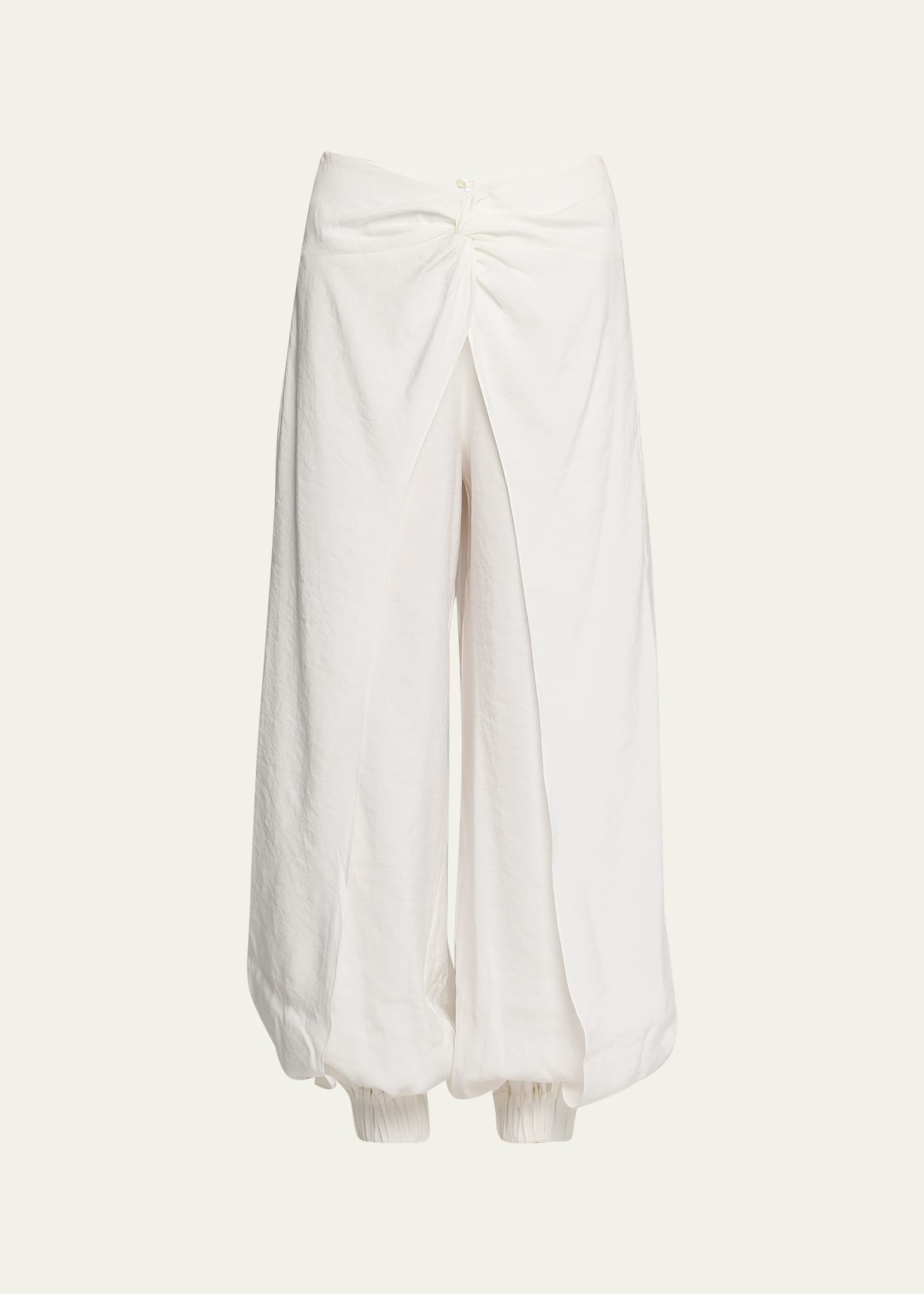 Silvia Tcherassi "Raimondo" pants with v-shape knot twist waistline Mid rise Balloon legs Cropped at the ankle Elastic cuffs Back zip Viscose/polyester Elastane/polyester lining Dry clean Made in Colombia