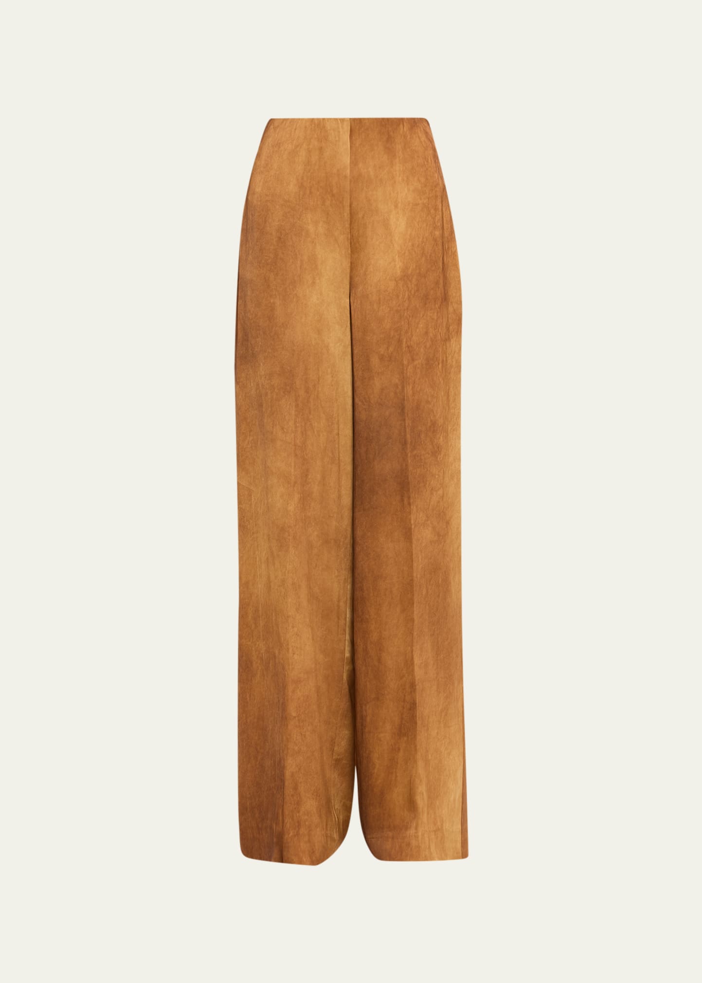 Kobi Halperin "Raquel" pants in a tie-dye print Approx. 33"L inseam High-rise waist Flat front Full length Wide legs Invisible side zipper Viscose Unlined Dry clean Imported