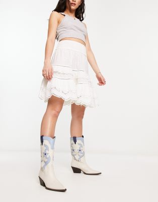 Skirts by Reclaimed Vintage Exclusive to ASOS High rise Elastic waist Broderie trims Regular fit