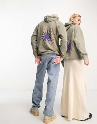 Reclaimed Vintage unisex celestial sun hoodie in washed khaki-Green