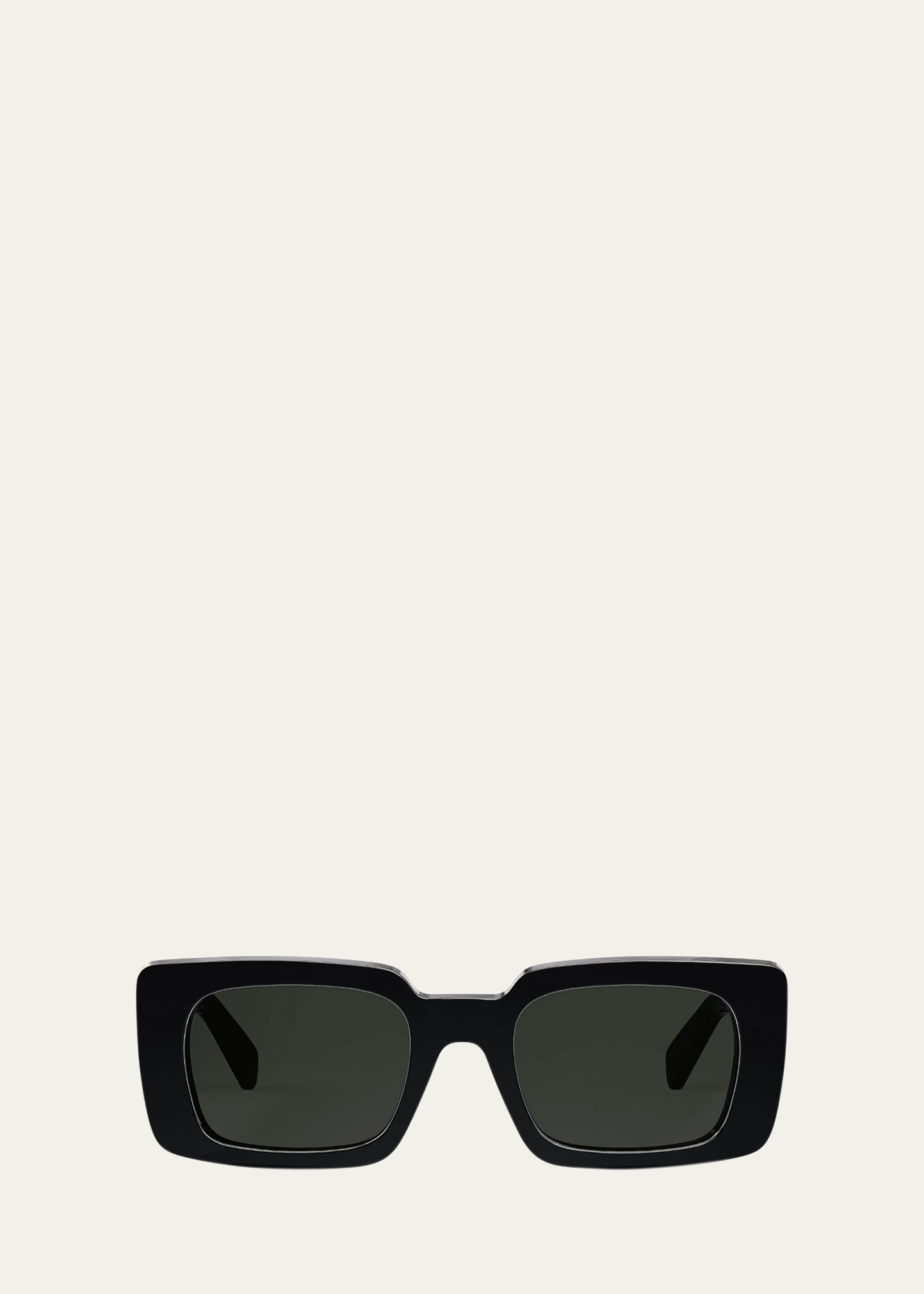 Celine rectangle sunglasses in acetate Lens/bridge/temple (in mm): 51-21-140 Oversized frame Solid lenses Two-dot hardware accent near hinges Small logo on temples Thin, tapered arms Includes leather case with rope handle 100% UVA/UVB protection Made in Italy
