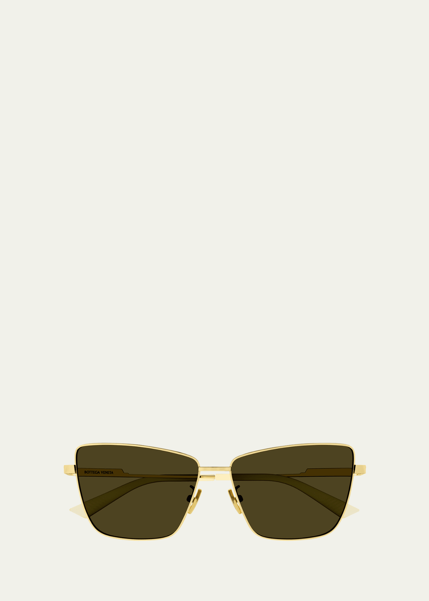 Bottega Veneta rectangle sunglasses in metal Solid lenses Adjustable nose pads Linear accent on hinges Thin, tapered arms Capped earpieces 100% UVA/UVB protection Made in Italy