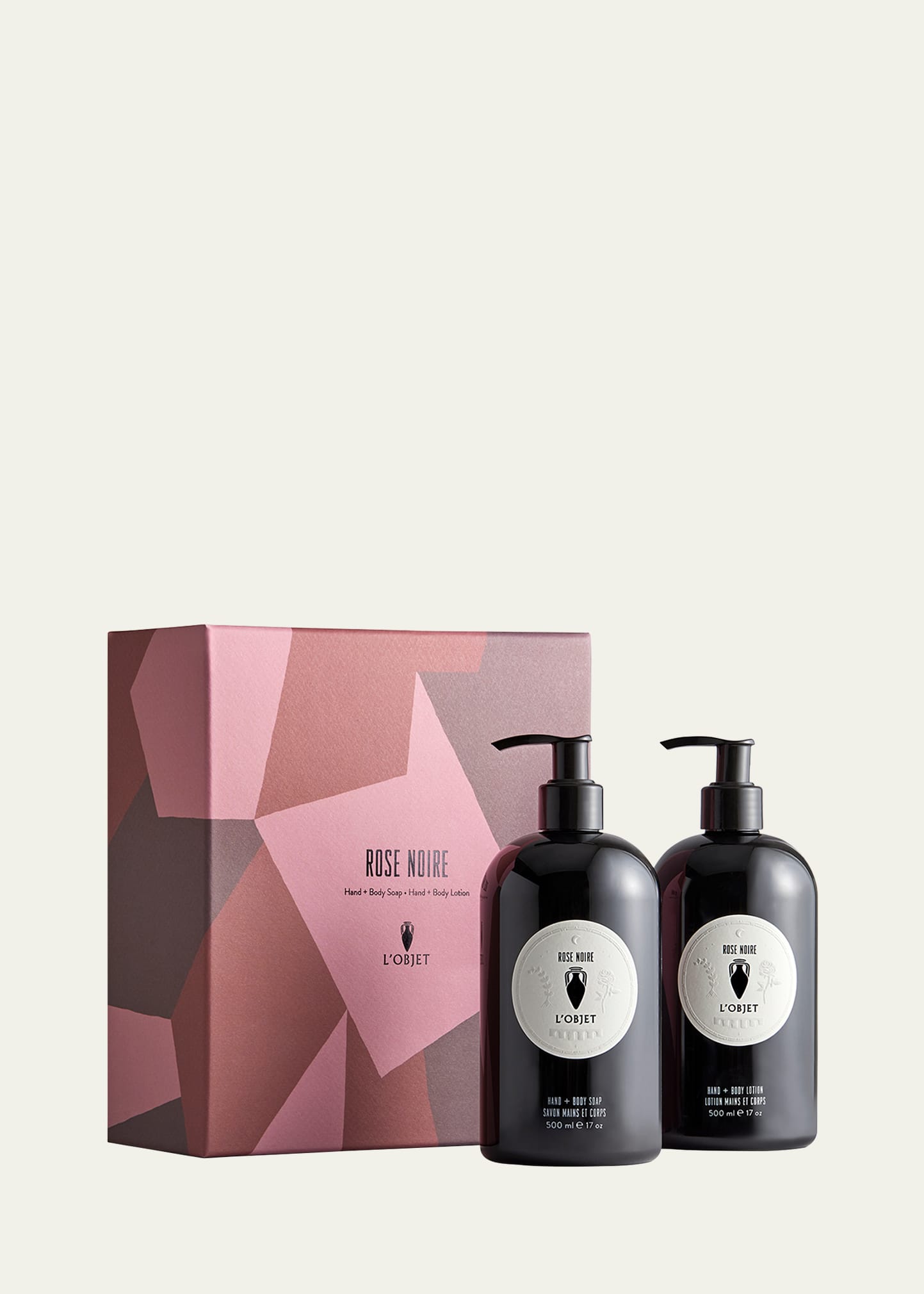 L'Objet Rose Noire Gift Set: Soap + Lotion, 2 x 17 oz. The L'Objet Apothecary collection transforms ordinary rituals into extraordinary escapes. A modern take on age-old Mediterranean traditions, Europe's beauty artisans and L'Objet house perfumer Yann Vasnier use natural ingredients to formulate rich fragrances and bathing experiences to invigorate the body and mind. ROSE NOIRE: The essence of a rose garden at dusk. Elements combine in a velvet blend of exotic floral.