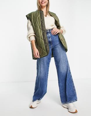 Selected Femme cotton wide leg jeans with pleat front in washed blue - MBLUE-Blues