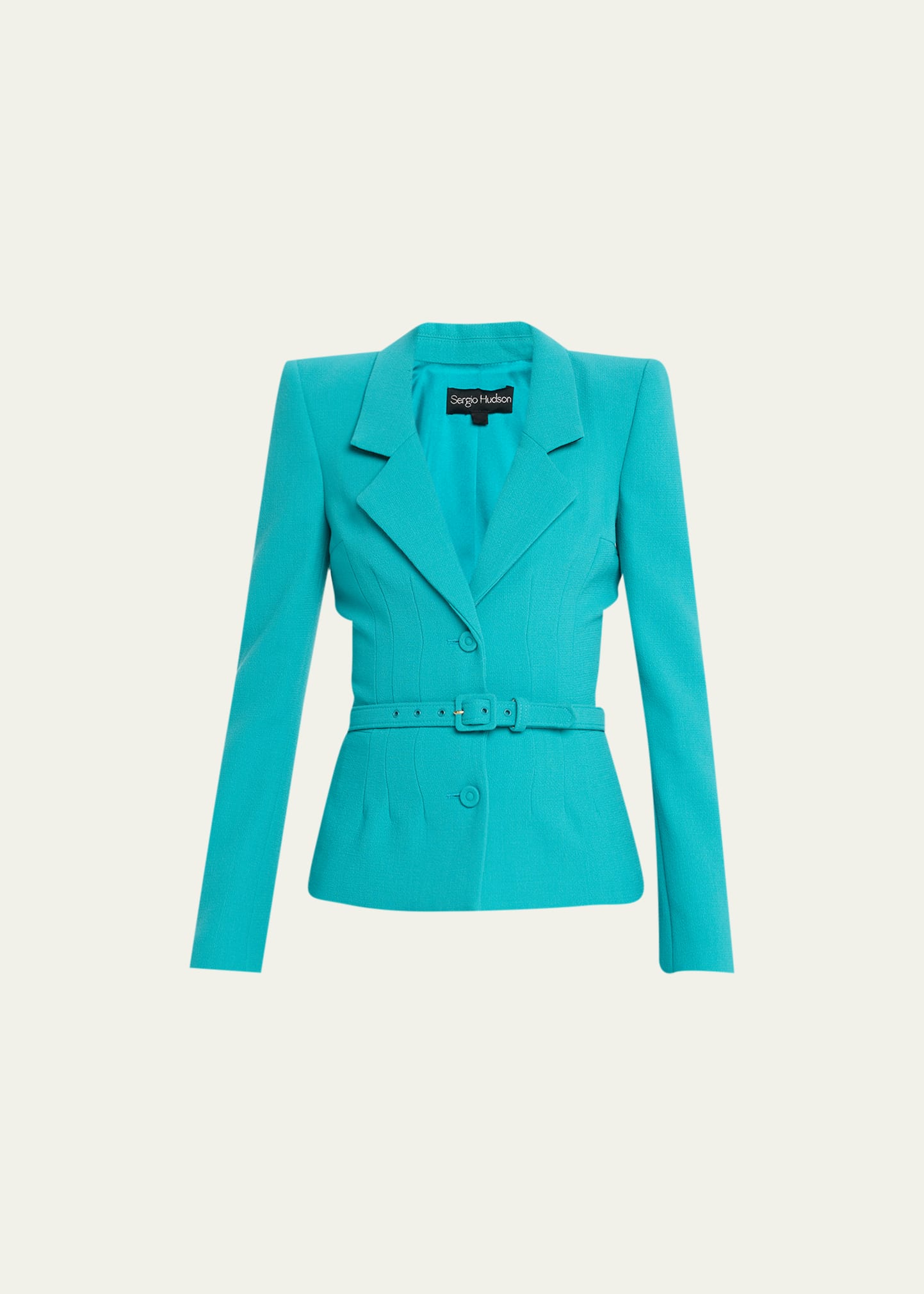 Sergio Hudson dart detail jacket with adjustable belted waist Notch lapels; button front Long sleeves; button cuffs Tailored fit Short length Wool Dry clean Made in Italy