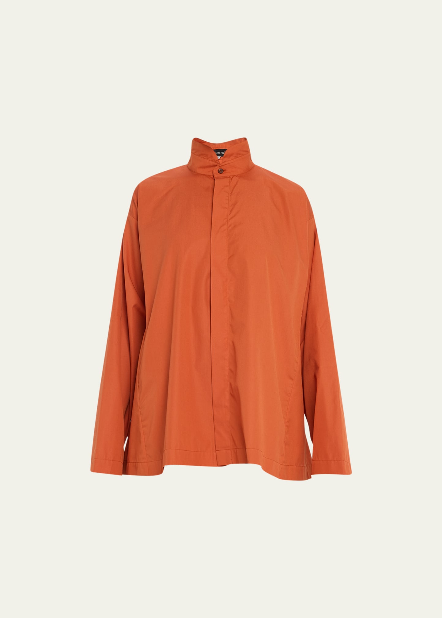 Eskandar poplin shirt with side paneling detail Double stand collar; concealed button front Long sleeves Drop shoulders Mid plus length Cotton Made in Poland