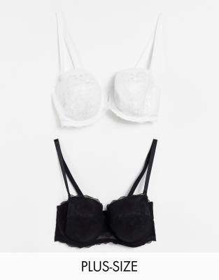 Simply Be 2 pack lace underwired padded multiway bras in black and white