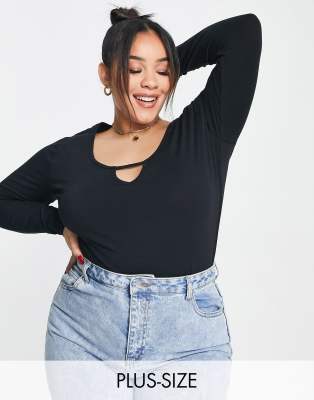 Top by Simply Be A silhouette serve Round neck Long sleeves Keyhole detail High-cut leg Body-conscious fit