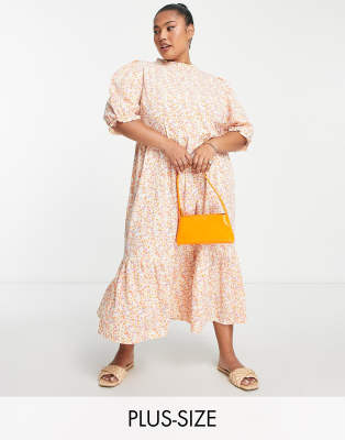 Dresses by Simply Be A round of applause for the dress Floral design High neck Puff sleeves Button-keyhole back Regular fit