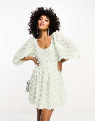 Dresses by sister jane Am I.the drama? Scoop neck Volume sleeves Faux-feather details Zip-back fastening Regular fit