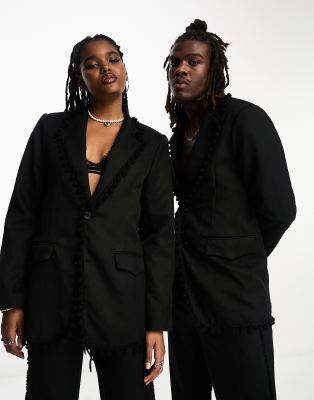 Sister Jane tweed fringe trim blazer in black - part of a set