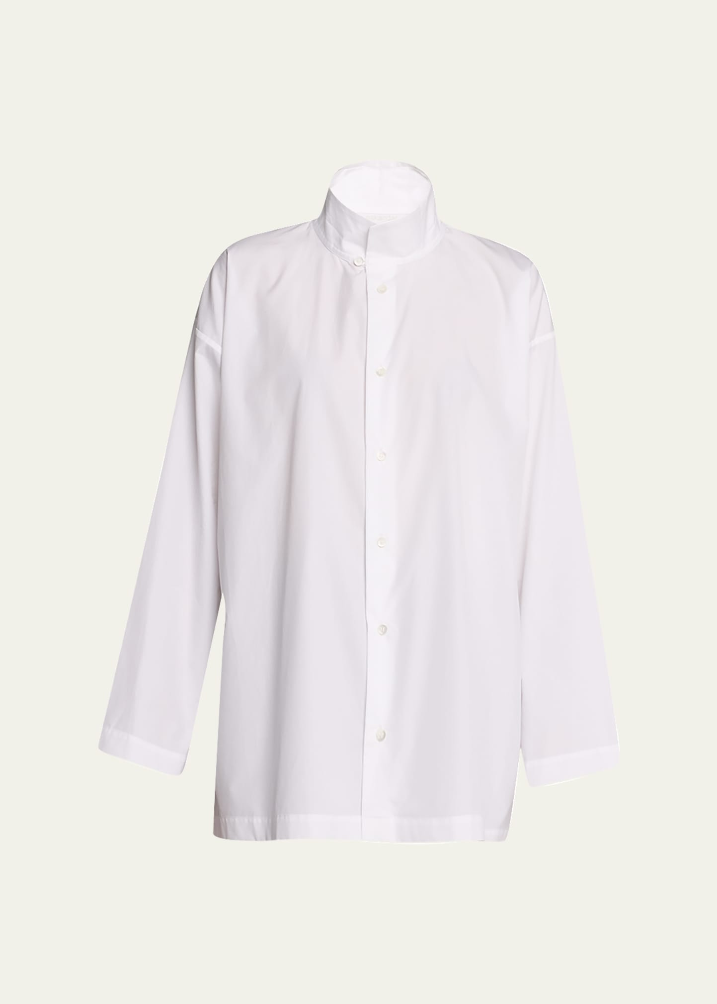 Eskandar blouse in cotton poplin Stand collar with spread collar overlay; button front Dropped shoulders Long, wide sleeves Step hem 100% cotton Made in Poland of Italian materials