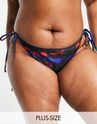 South Beach Curve Exclusive tie side bikini bottoms in multi print