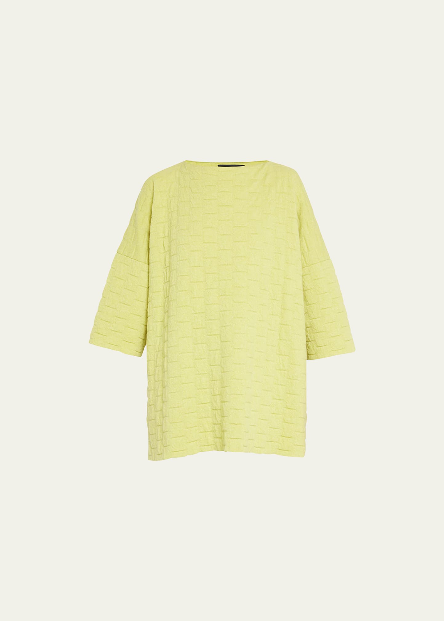 Square Three Quarter-Sleeve Cashmere Top (Long Length)