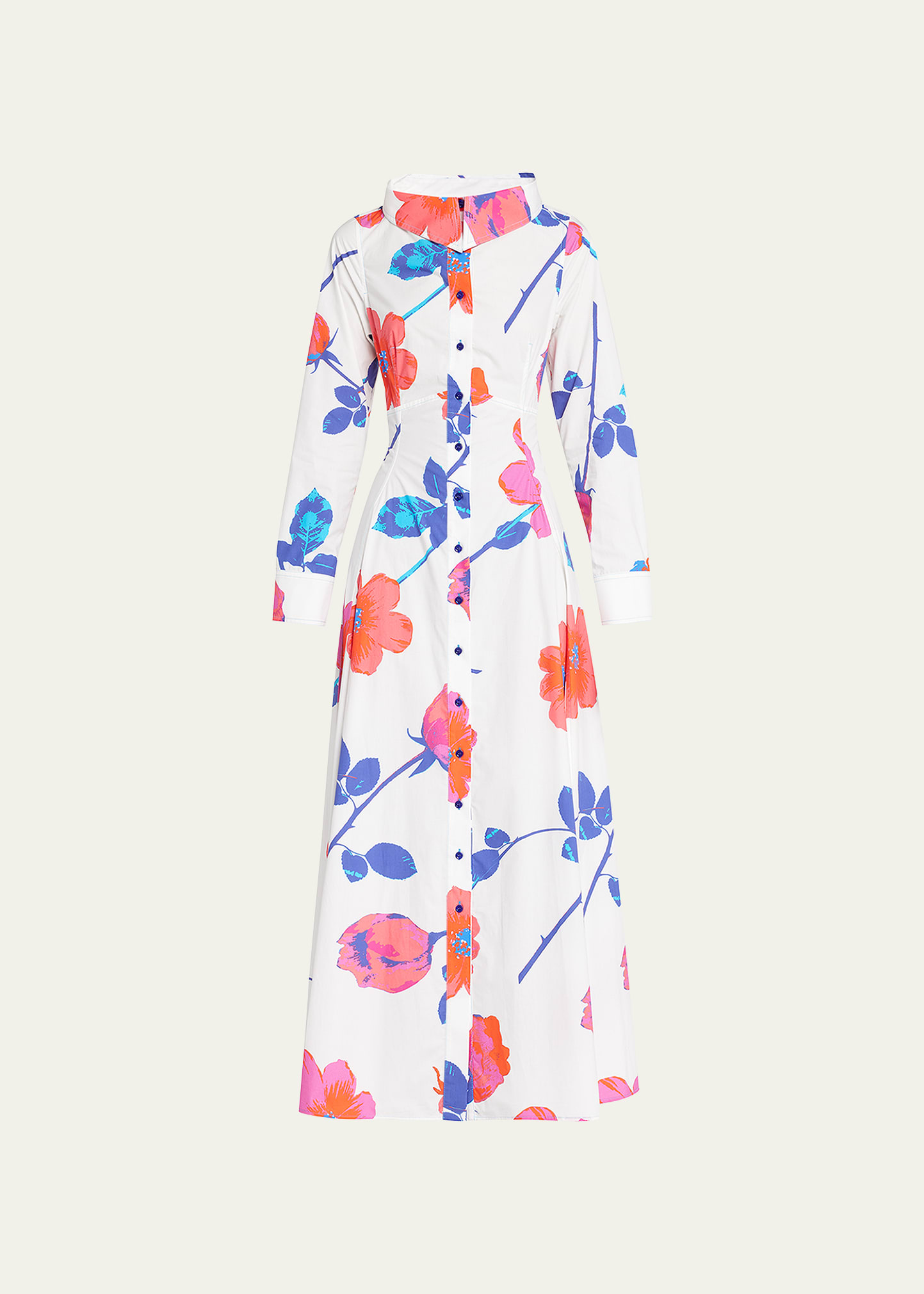 CHRISTOPHER JOHN ROGERS poplin shirtdress in floral stem print Spread collar; button front Long sleeves; button cuffs A-line silhouette Full length Cotton Dry clean Made in USA