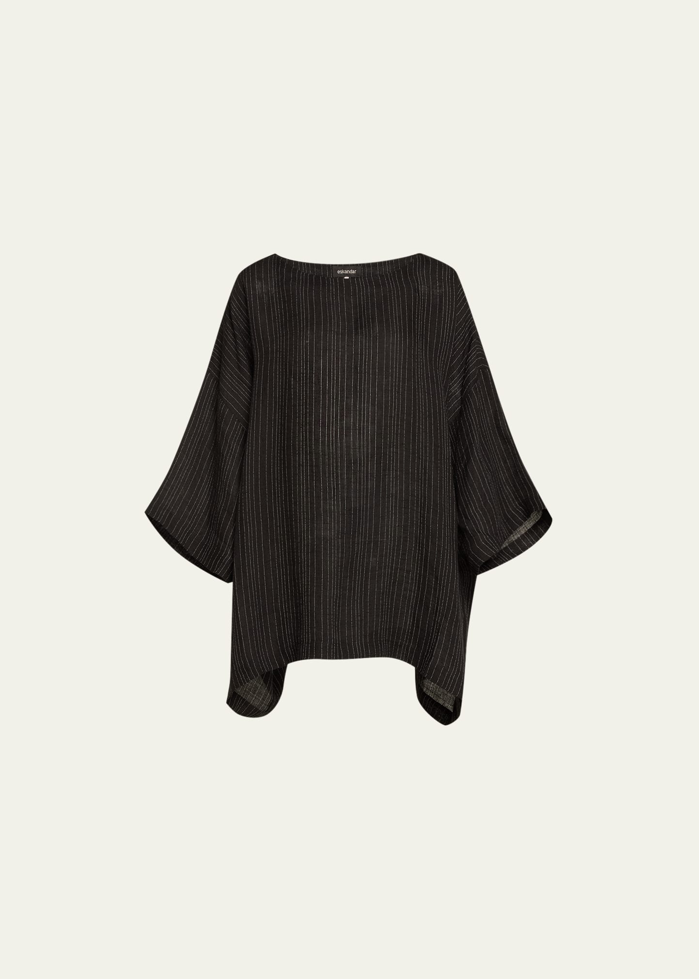Eskandar stripe tunic Scoop neckline Three-quarter sleeves Long length Linen Made in Poland