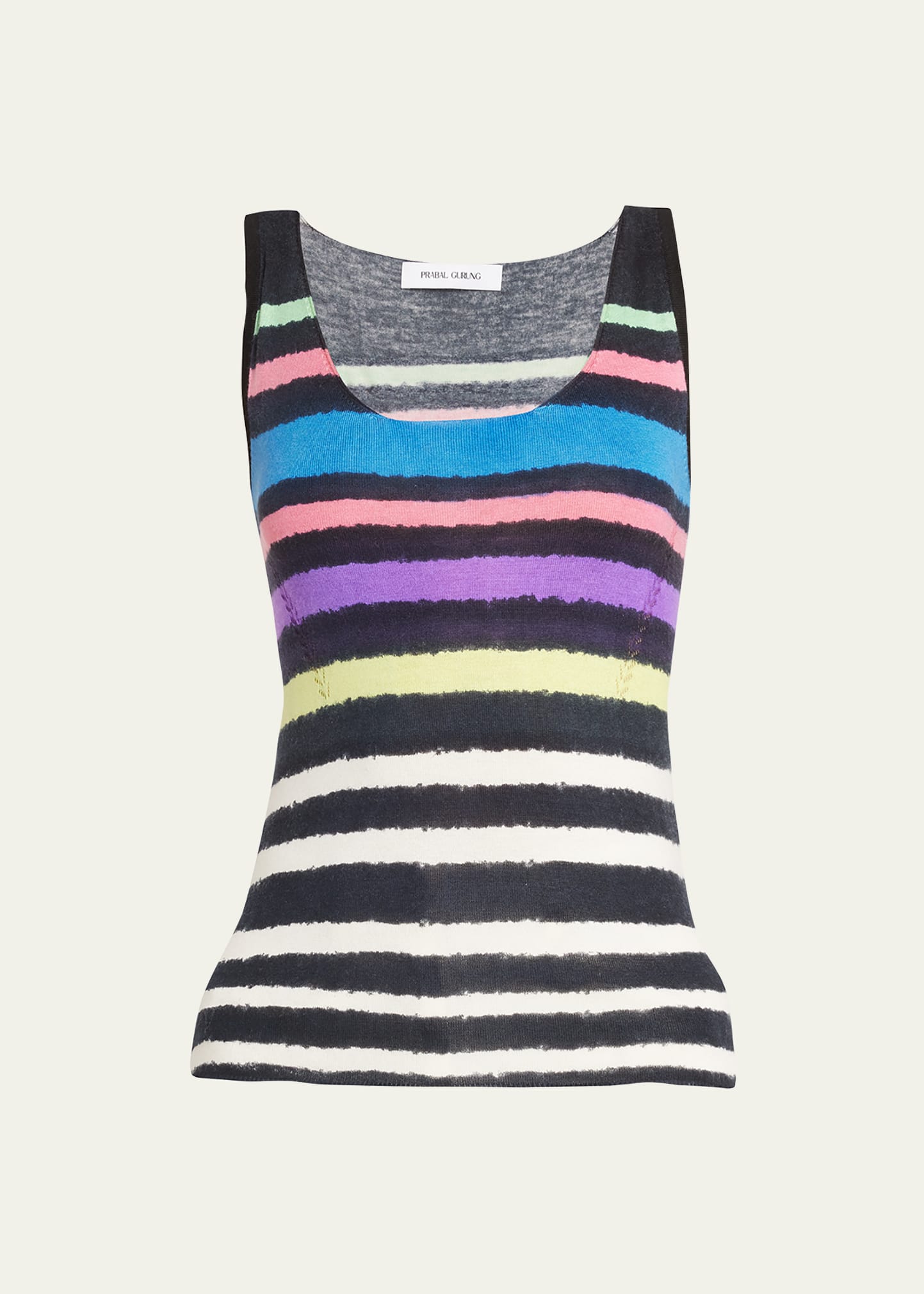 Prabal Gurung tank top in stripe pattern Scoop neckline Sleeveless Slim fit Pullover style Silk/virgin wool/cashmere Imported