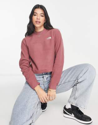 The North Face TKA mock neck fleece sweatshirt in dark pink-Red