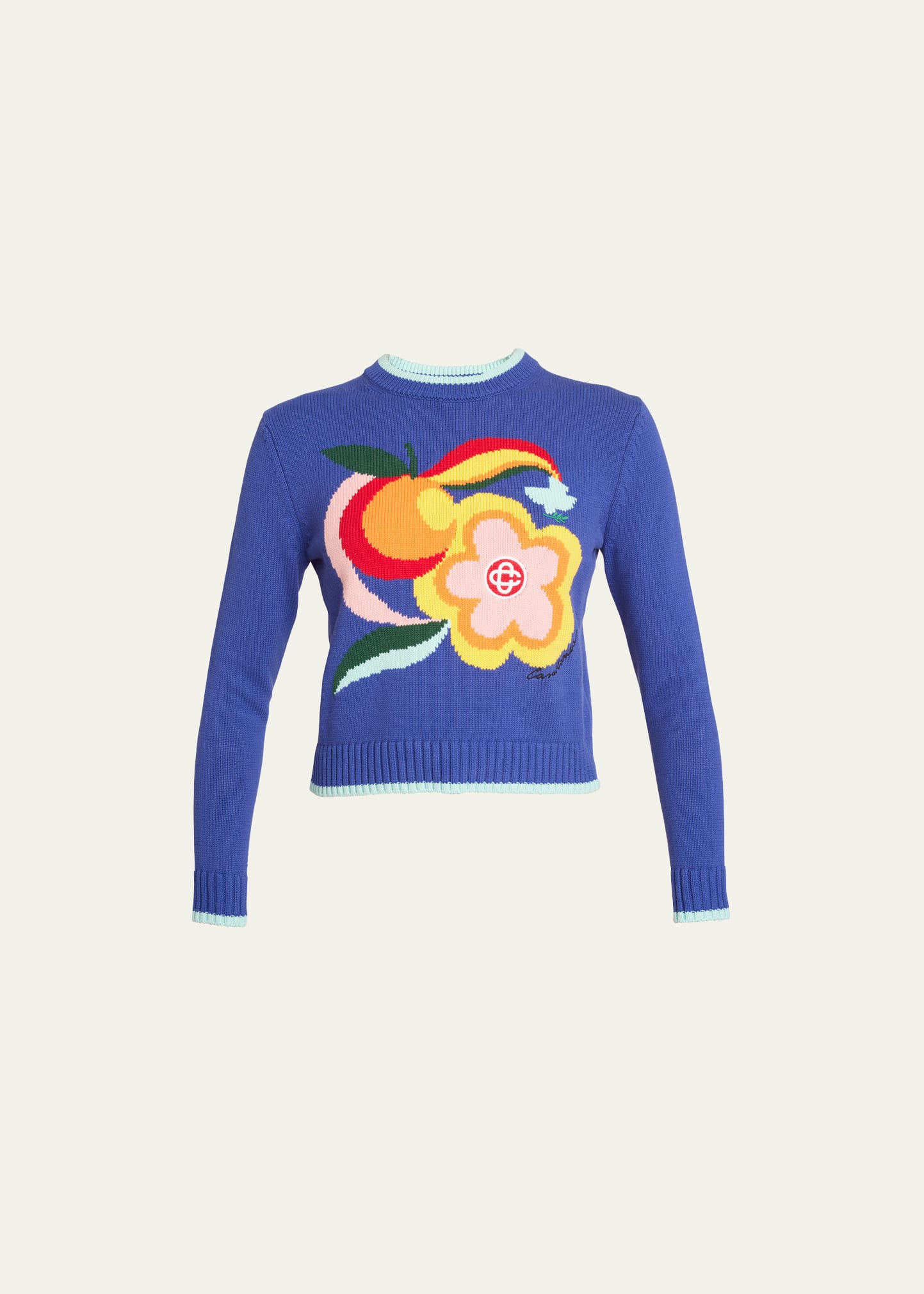 CASABLANCA "The Power of Flowers" intarsia knit sweater with contrast tipping Funnel neckline Long sleeves Slim fit Pullover style Cotton Dry clean Imported