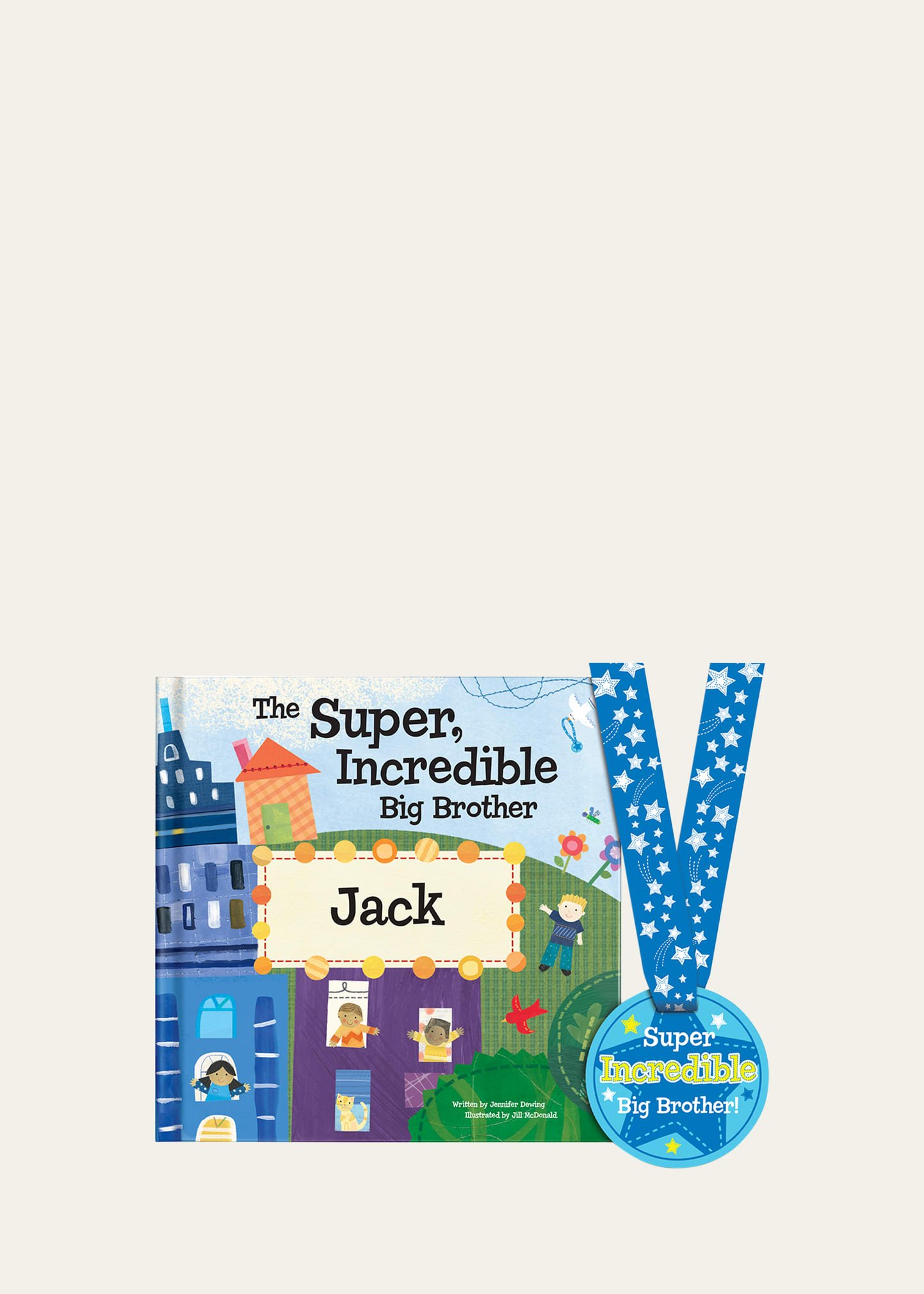 I See Me! "The Super Incredible Big Brother" illustrated book by Jennifer Dewing. Personalized with child's first and last name, younger siblings first name and gender (up to 15 characters per name). Approx. 8.5"Sq. x 1"T. 20 pages. Paper. Made in USA.