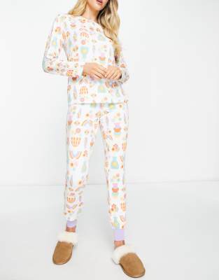 The Wellness Project x Chelsea Peers long pajama set in cream and lilac flower print-White